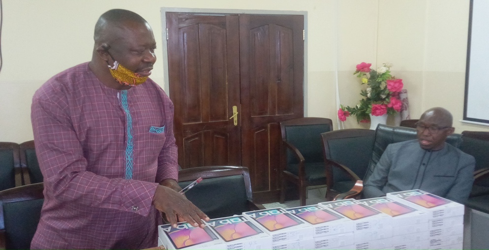 Presenting the items to the Hon. Minister of Fisheries and team in the conference room of the Ministry, the WARFP National Coordinator (Dr. Sallieu Sankoh) said the items were bought with funds from the World Bank funded West Africa Regional Fisheries Program in Sierra Leone (GEF-Additional Financing Project) in accordance with the government of Sierra Leone laid down procurement procedures to assure due diligence, upon the request of the Ministry, giving brief description of the said items, that the iPads and mobile phone devices can accommodate huge amount of data at sea or in the fish landing sites and that this data can be transmitted remotely into the Ministry’s server using mobile phones network. The coordinator added that the 128 GB memory cards will also aid the storage of data and other useful information’s for later down load for landing sites or fishing grounds where there is no mobile phone network. The coordinator further added that the Tablets and Phones also have capacity to geo reference the data that is transmitted into the server, so Observers and enumerators who fail to go sea or the fish landing sites and enter fish catches from their homes into the phones and tablets would be identified and punished for dishonesty.