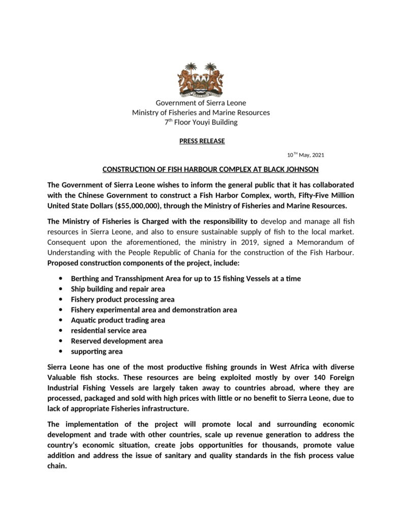 CONSTRUCTION OF FISH HARBOUR COMPLEX AT BLACK JOHNSON
