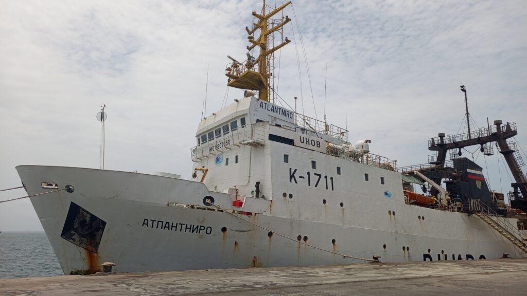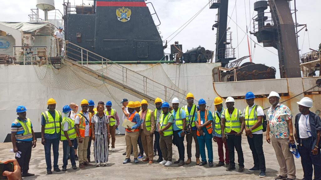 Freetown, April 23, 2025 — In a significant stride towards sustainable fisheries management, the Russian research vessel ATLANTNIRO was warmly received at the Queen Elizabeth II Quay in Freetown. The event was graced by key figures including the Honorable Minister of Fisheries and Marine Resources, Princess Dugba Bio; Acting Director of Fisheries, Sheku Sei; Permanent Secretary, Brima T.S. Kebbie; and esteemed professors from the Institute of Marine Biology and Oceanology (IMBO), University of Sierra Leone.
